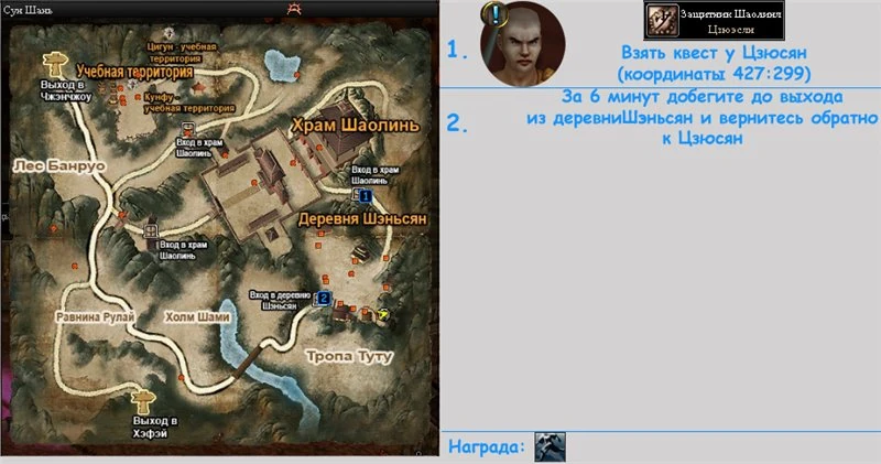 - За 6 минут добегите до выхода из деревни Шэньсян и вернитесь обратно к Цзюсян