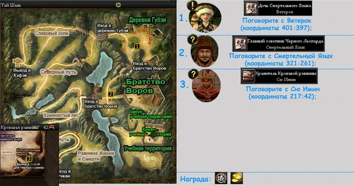 - Победите: Ученик, Кровавый вор Юань Чжи И (координаты 698:776);