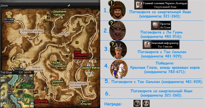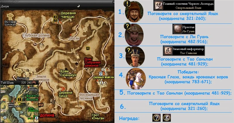 - Поговорите с Тао Саньлан (координаты 481:929);