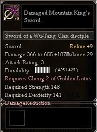A Golden Lotus sword refined to +9, with 1 empty slot.